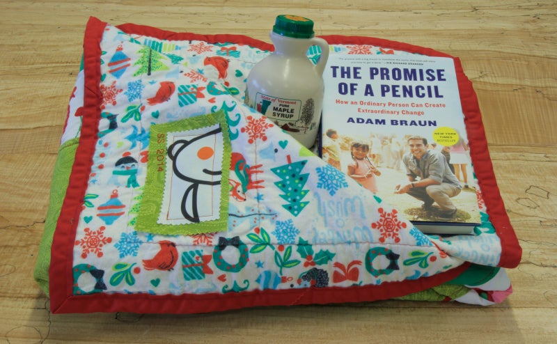 BILL GATES: It is quite a coincidence but my gift arrived this morning. I got three cool things - a great quilt that a group of people did with a Snoo on it. A great jug of maple syrup and the book The Promise of a Pencil. All very thoughtful. Last year I waited and nothing came.
